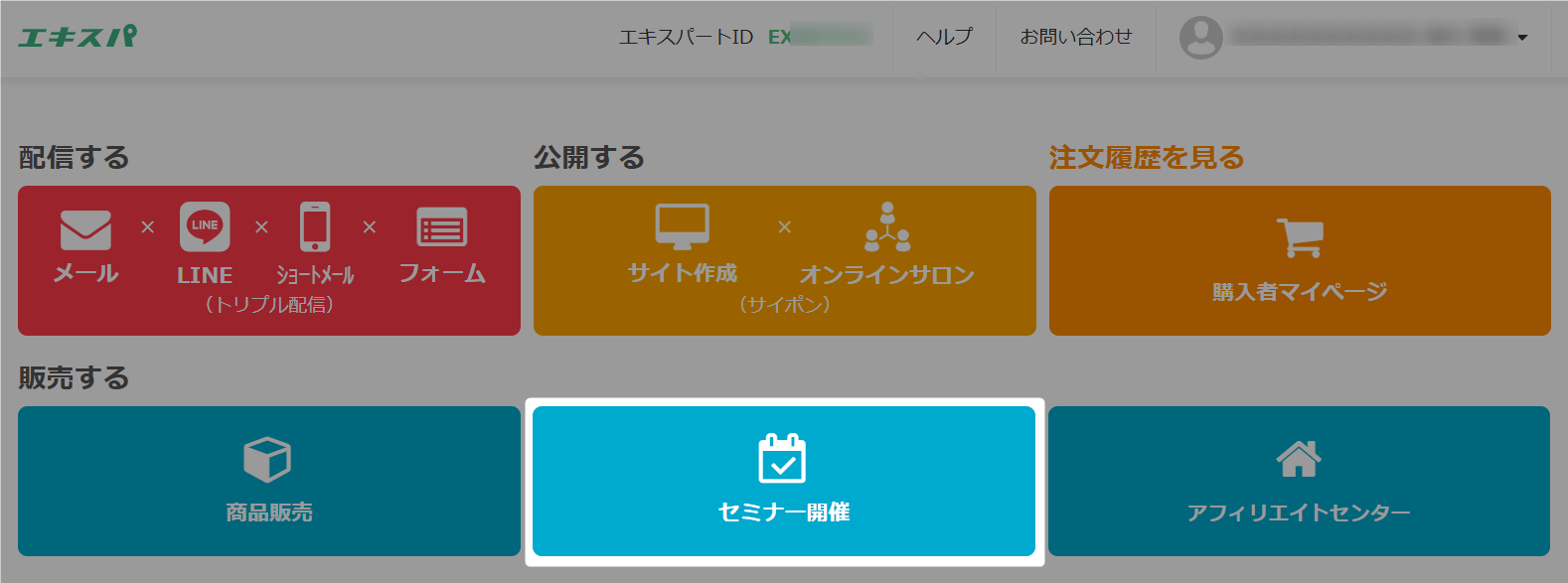 - セミナー一覧画面で、商品情報とアフィリエイター一覧を確認したいセミナーの「設定」をクリック。