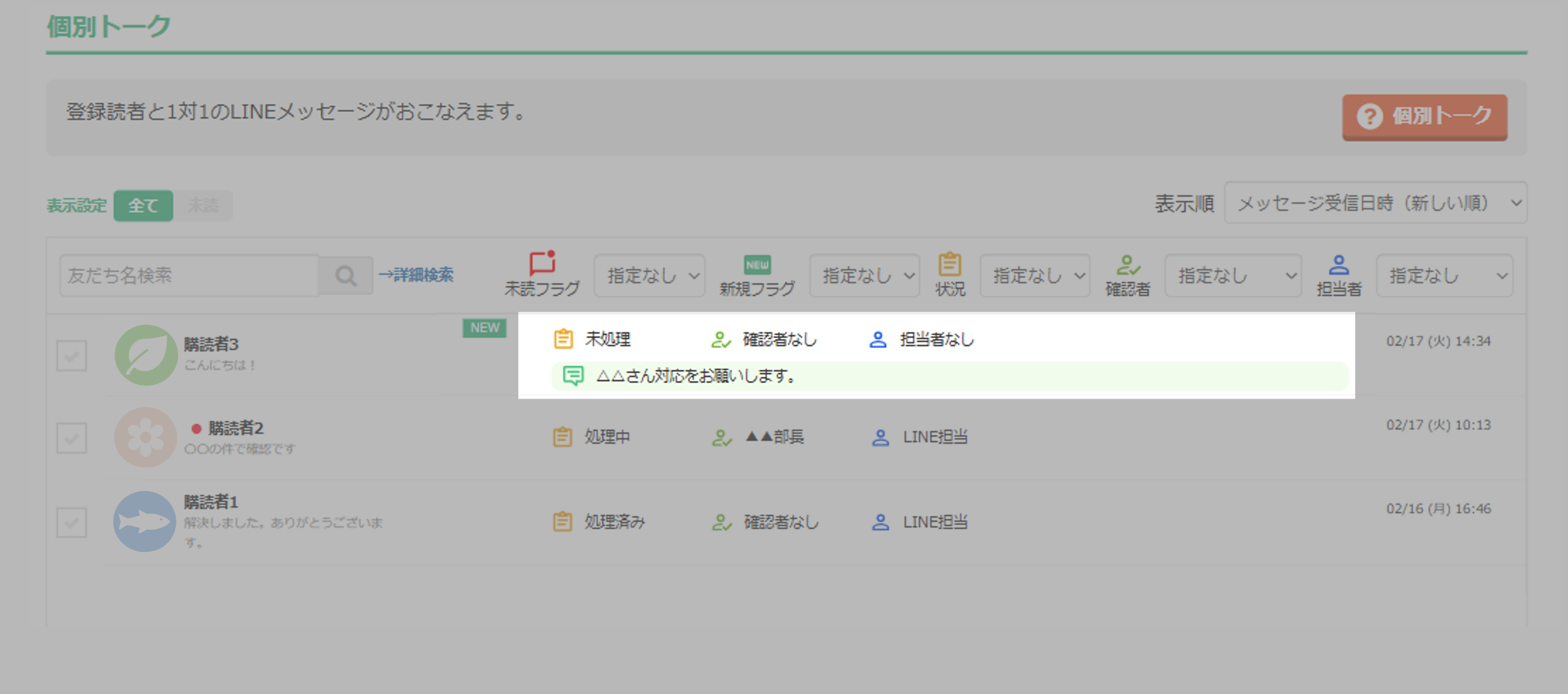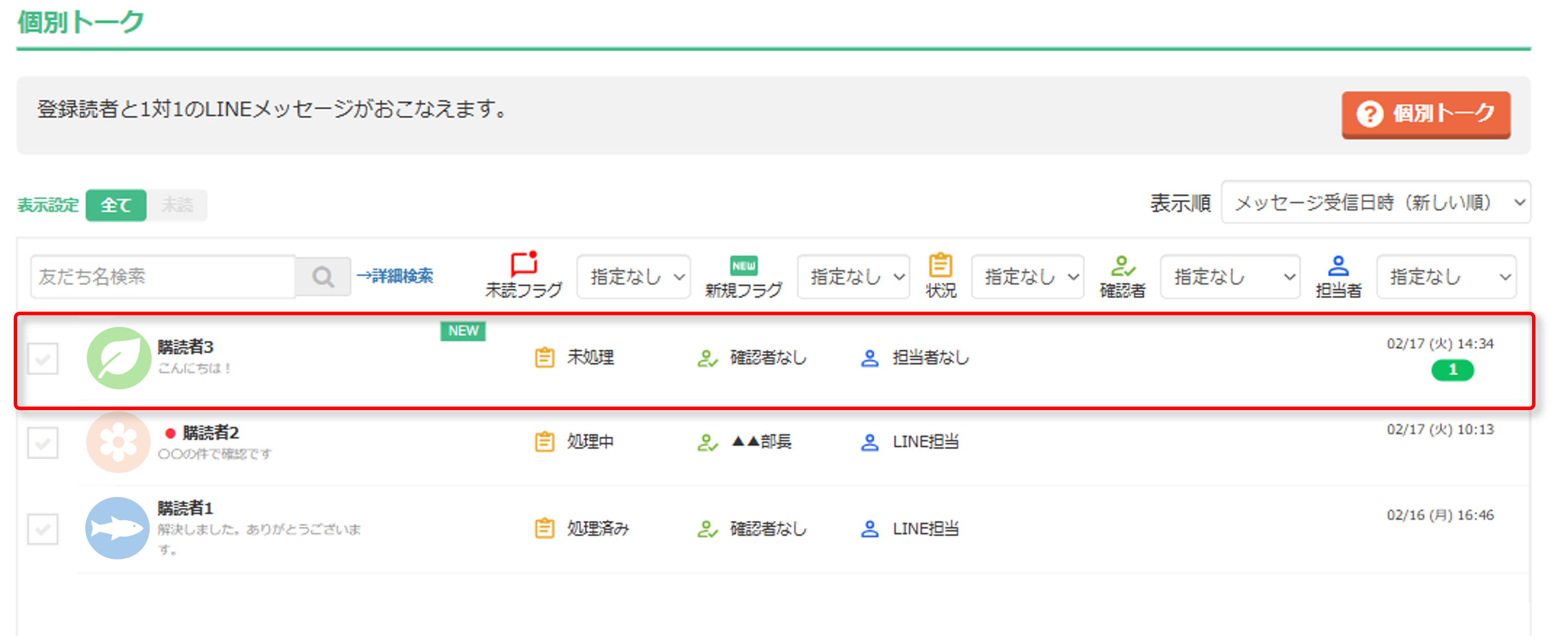 - 以上が、個別トーク一覧画面の確認手順となります。