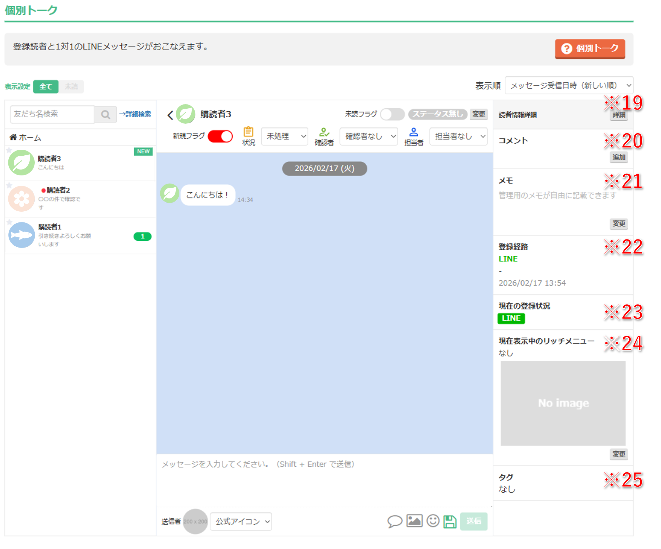 | ※25 タグ | この友だちに設定されているタグが表示されます。 |