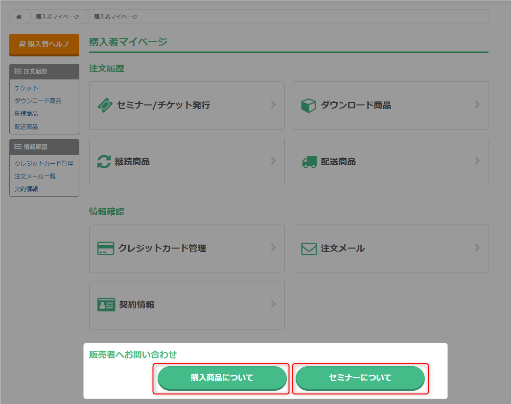 - 以上が、販売者 / 主催者への問い合わせ手順です。