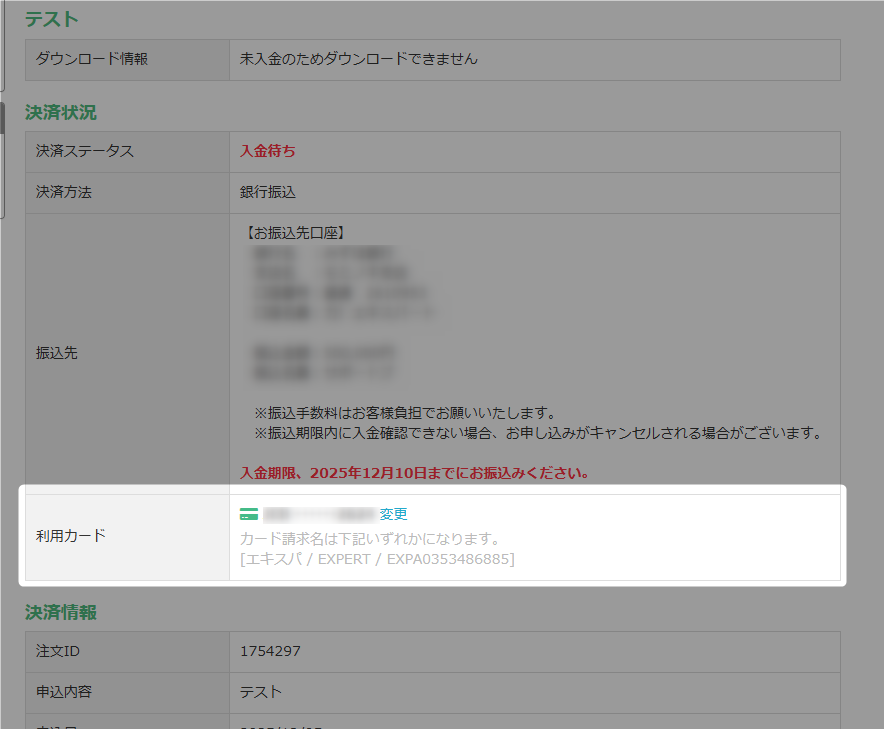 クレジットカード請求名の確認方法カード決済ができなかった場合の対応手順商品購入の流れ(クレジット決済)商品購入の流れ(銀行振込決済)注文履歴の確認手順注文メールの確認方法領収書の発行手順エキスパへのログイン方法エキスパ パスワードの再発行手順